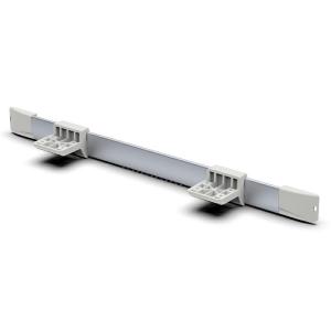 Kit attacco scorrevole per tavolo costruito da un profilo di alluminio e componenti in plastica.