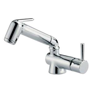 Miscelatore monocomando con doccia estraibile a pulsante