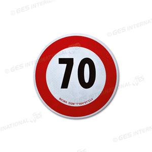 Il segnale riportante il limite dei 70 km/h va posizionato nella parte posteriore sinistra del rimorchio, il segnale riportante il limite dei 80 km/h va posizionato nella parte posteriore destra del rimorchio.