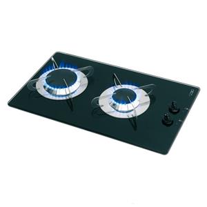 Piano cottura rettangolare ad incasso in vetro temperato antigraffio, alimentazione a gas a 2 fuochi con bruciatori SR-R. Sul piano è inserita una speciale bussola che viene utilizzata come sede del ferma pentole a colonna.