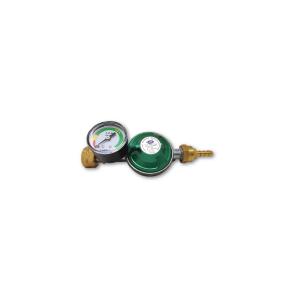 Regolatore Gpl bassa presione con ingresso attacco girello bombola Italia F20x1/14 e in uscita portagomma Gpl con indicatore di livello bombola Italia e valvola di eccesso flusso.
